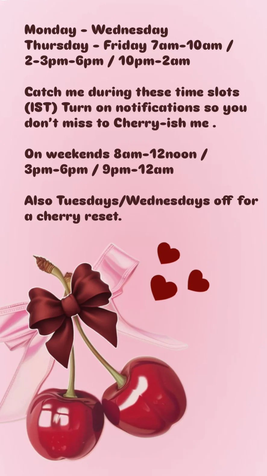 Hi, I’m Cherry… a soft girl with a dark feminine edge 🍒 I love slow, pretty living—skincare, cute PJs, and a little luxury in everyday life. I’m also love playing gamed on PS5, and I’m obsessed with dark, psychological thrillers and crime series. I enjoy learning, exploring, and romanticizing the smallest moments. Stay a little… you might like it here 🍒
